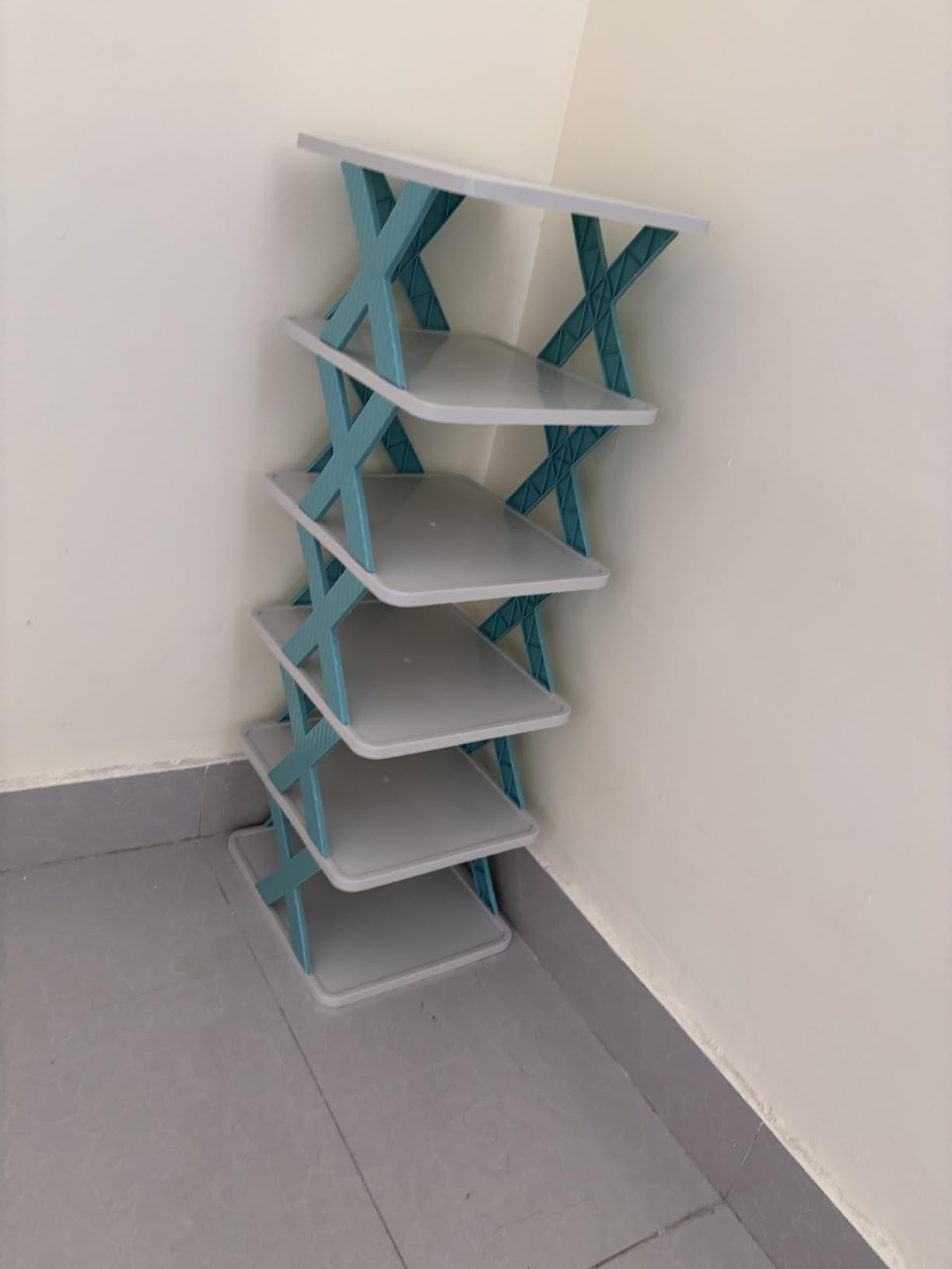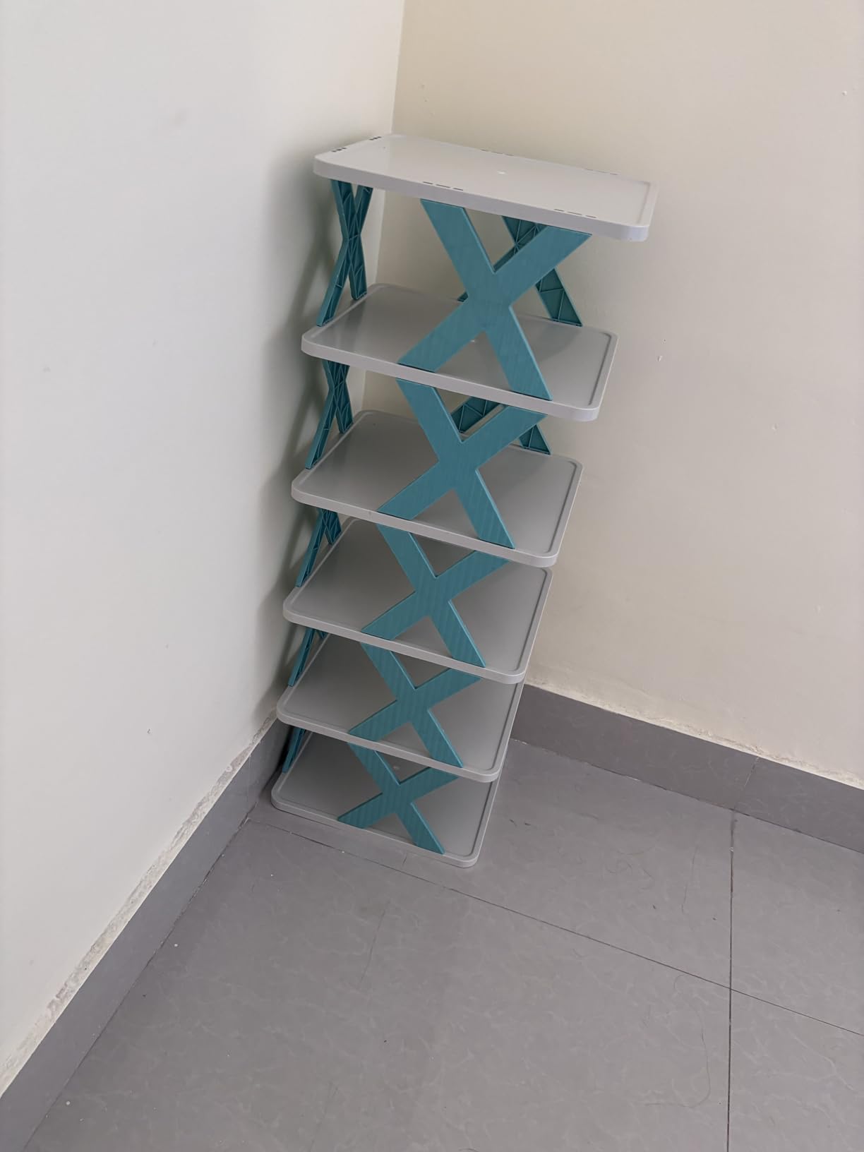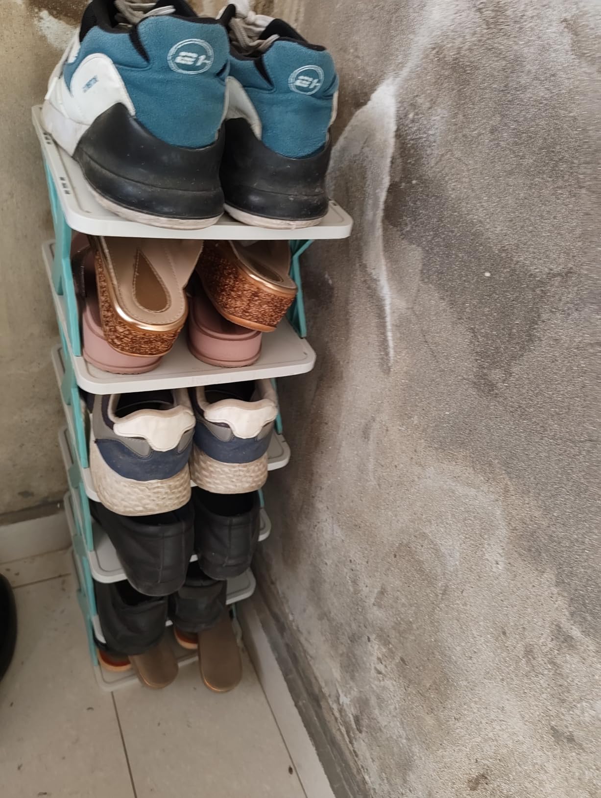 I bought this shoe rack about 2 week ago and I'm really happy with the quality of this shoe rack at this price. This 6 layer shoe rack is a simple yet smart addition to any home. The design is sleek and blends well with my room decor - not feeling a cheap plastic material. Assembly was super easy with all parts fitted perfectly. I specially like how it keeps everything organized. It's really good for family and for personal growing shoes collection. Definitely it's a value for money product with this kind of good quality material and premium feel.
